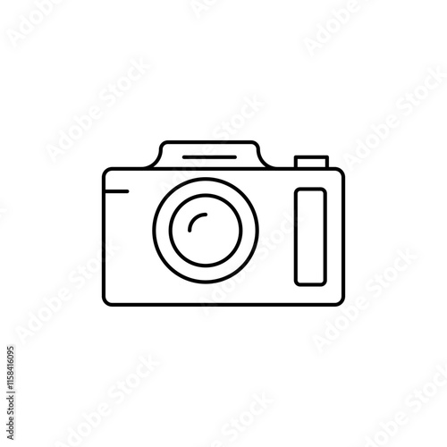 Camera Outline Icon Implies the art of photography and taking pictures.