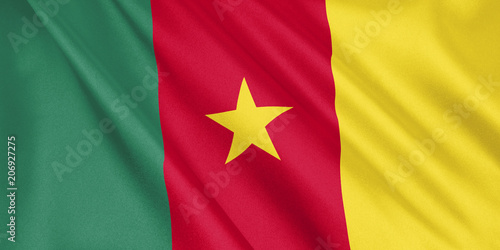 Cameroon flag waving with the wind, wide format, 3D illustration. 3D rendering.