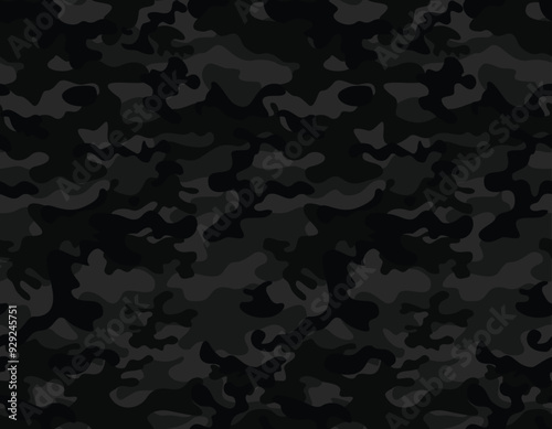 camouflage black dark pattern, repeat background, fashionable stylish classic night print