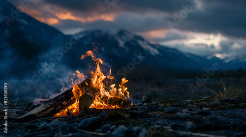 Campfire Glow Amidst Mountain Peaks