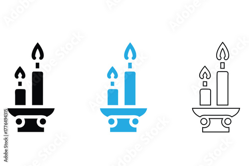 candle holder with candle vector icon, candle holder vector, silhouette and line art