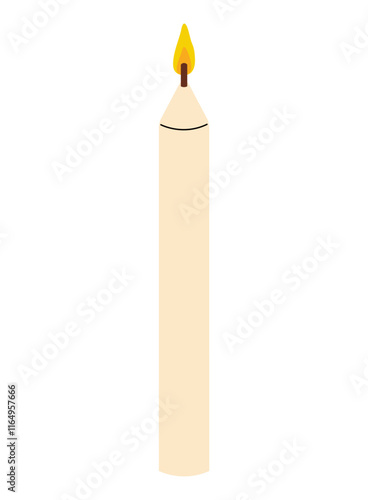Candle with a yellow flame burning in a minimalistic style and simple design