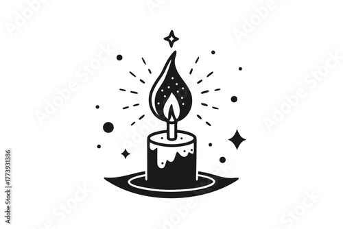 Candle with Star Spark Icon Bright Flame Outline