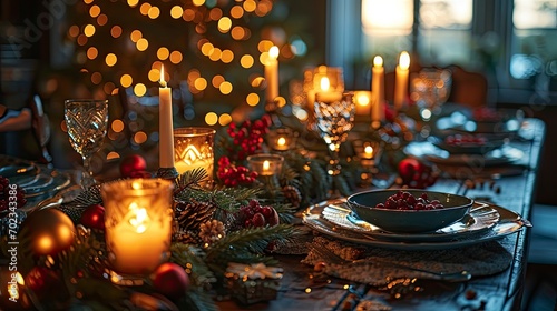Candlesticks Pine On Holiday Table Set, Background HD, Illustrations
