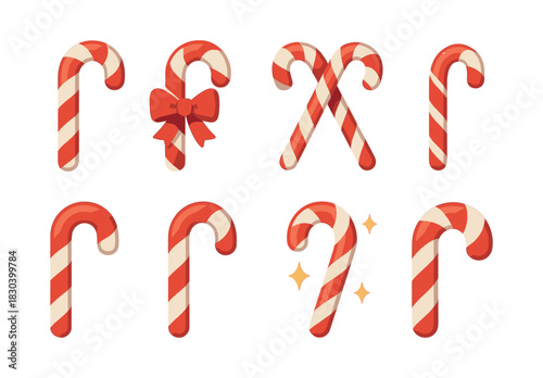 Candy cane collection, holiday treats, peppermint, flat vector illustration