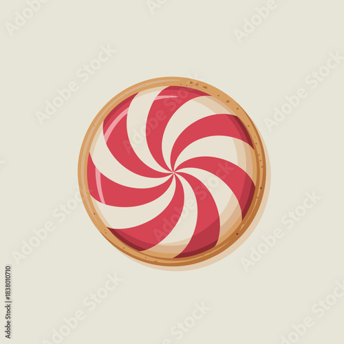 Candy cane swirl sugar cookie vector illustration – Perfect for holiday baking content, Christmas recipe cards, or bakery flyers.
