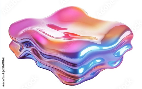 Candy-colored futuristic liquid chrome texture, isolated on clear white background