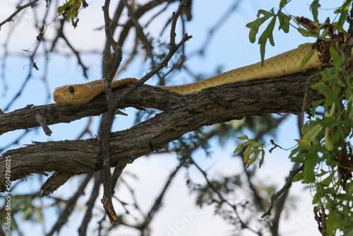 Cape Cobra in a tree in the Kgalagadi, South Africa