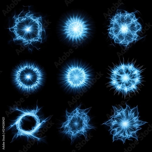 Captivating Blue Cosmic Sun Flare Effects Isolated on Dark Background