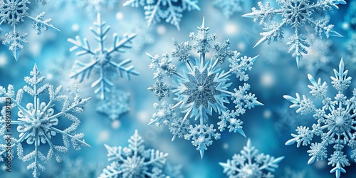 Captivating Macro Photography of Snowflakes on a Blue Background, Showcasing Intricate Patterns and Textures of Winter's Beauty in High Detail for Seasonal Decor and Inspiration