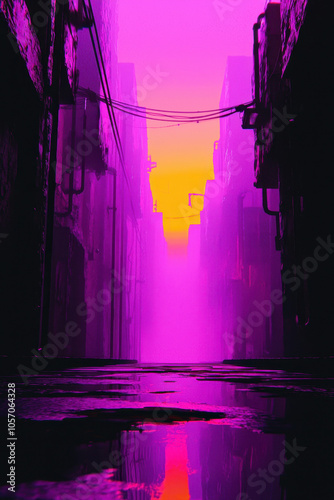 Captivating Neon Cityscape: A Vibrant Alleyway Shrouded in Mist