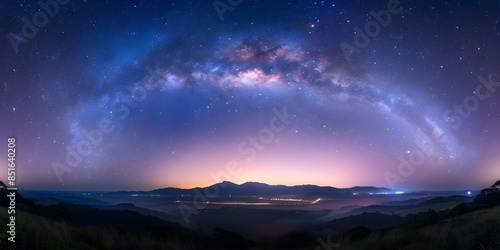 Captivating night sky with Milky Way over picturesque landscape highlighting natural beauty. Concept Night Sky Photography, Milky Way Views, Scenic Landscapes, Natural Beauty