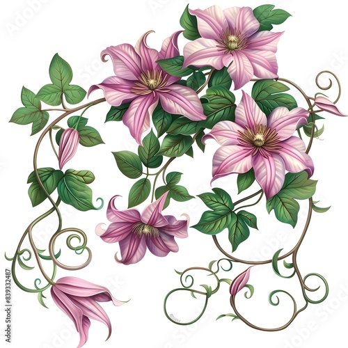 Captivating Pink Clematis Vine with Twisting Tendrils Blooming in Lush Garden
