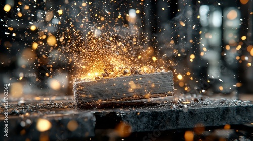 Captivating Transformation: Witnessing the Raw Power of Sparks Emanating from Wood in an Industrial Steel Smelting Plant Environment