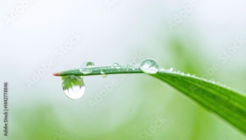 Captivating water droplets on green grass blade nature's beauty close-up photography tranquil environment macro viewpoint serenity concept