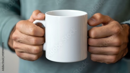 Captivating White Mug in Hands: Perfect for Your Morning Coffee Routine