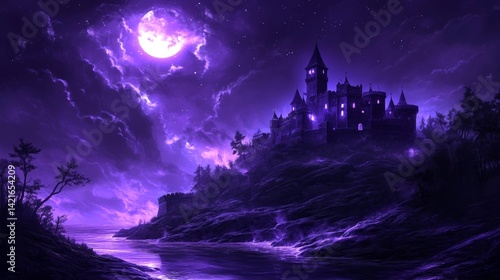 Capture the enchanting shape of a centuries-old castle at twilight in a beautiful landscape picture