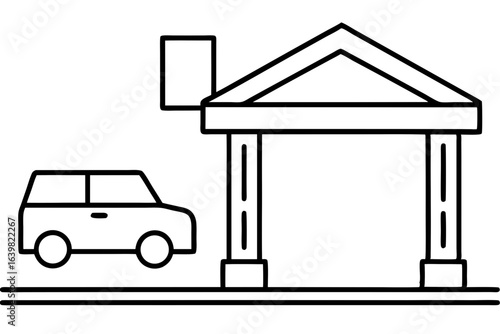Car Approaching Toll Booth Line Art Icon – Minimal Outline Transport Symbol