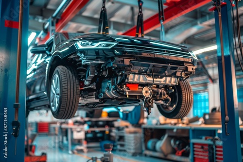 Car Engine Removal for Major Repairs in Auto Workshop Using Hydraulic Hoist - Maintenance and Mechanics
