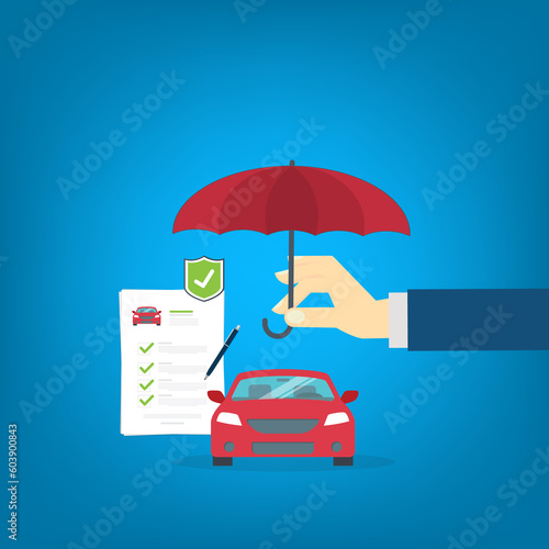 Car insurance document, report. Paper agreement checklist or loan checkmarks form list approved with automobile icon, vehicle financial, car dealership legal deal.