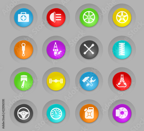 car shop colored plastic round buttons icon set