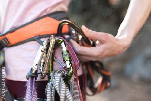 Carabiners and quickdraws on the climber's harness