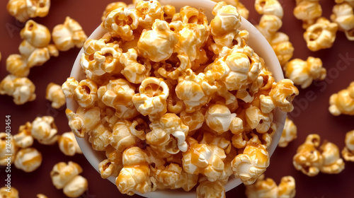 Caramel Popcorn Top View, Hyper-Realistic Photo