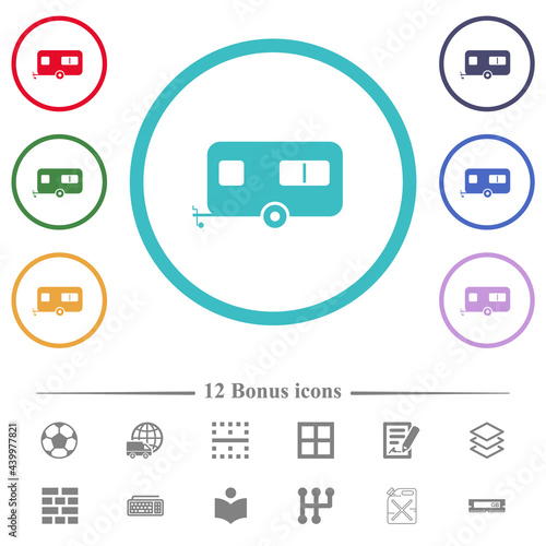 Caravan trailer flat color icons in circle shape outlines