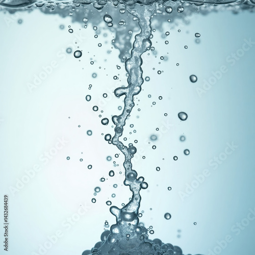 Carbonated bubbles. A stream of tiny bubbles of carbon dioxide rising through a clear carbonated liquid.