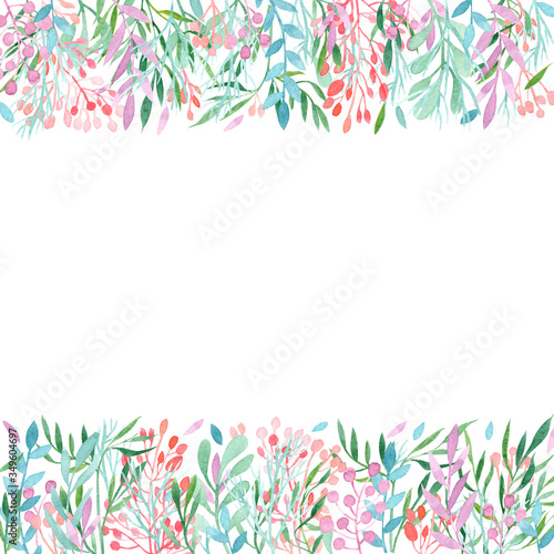 Card with watercolor delicate branches. Place for your text. Perfect for greetings, invitations, announcement, web and wedding design. Raster.