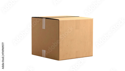 Cardboard box, square shaped, sealed with tape, on black