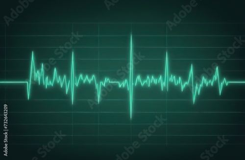 cardiogram line with a heart in the middle of the line drawn in chalk on a uniform dark green background