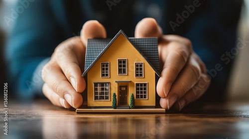 Carefully Held Miniature House Symbolizing Home Ownership and Protection