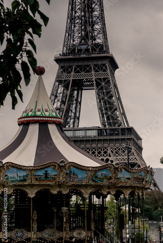 Carrusel con Torre Eiffel de fondo, acercamiento