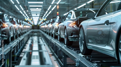 Cars being inspected for quality and consistency at the end of the assembly line