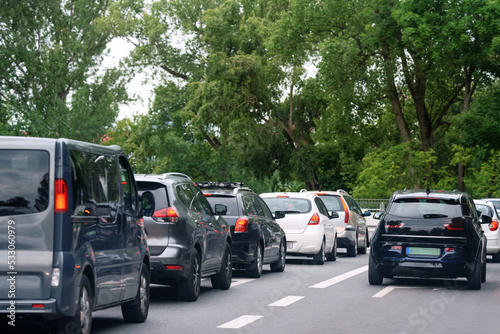 Cars in traffic jam on city street