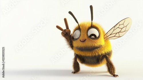 Cartoon bee wink and giving a peace sign, spreading good vibes, isolated on white
