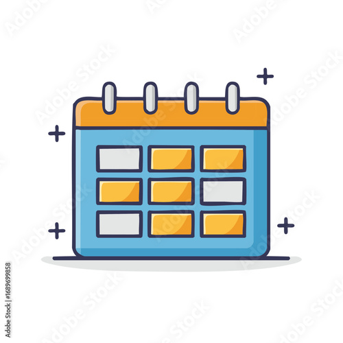 Cartoon Calendar Illustration with Marked Days and Positive Signs