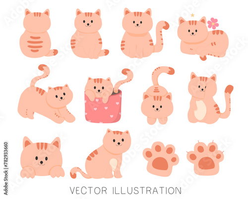 Cartoon cat set with different poses. Cat behavior, body language, Cat character. isolated vector illustration.