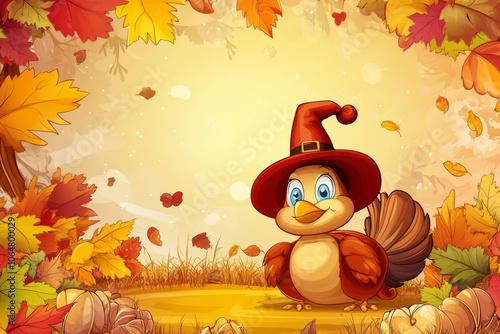 Cartoon Chicken and Pumpkin Autumn Illustration for Thanksgiving Card,Generated By Ai