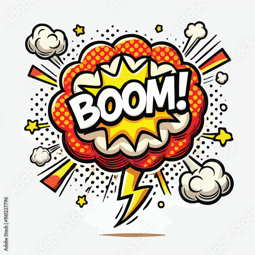 Cartoon comic sign burst cloud. Speech bubble, boom sign expression and on a white background