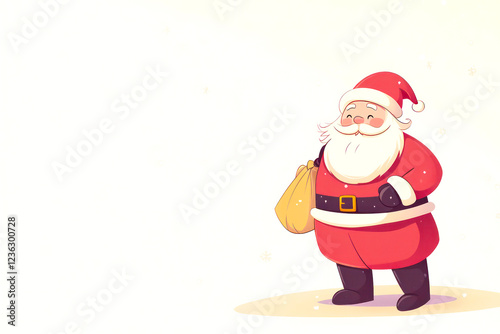 cartoon cute santa claus with a bag on a light background