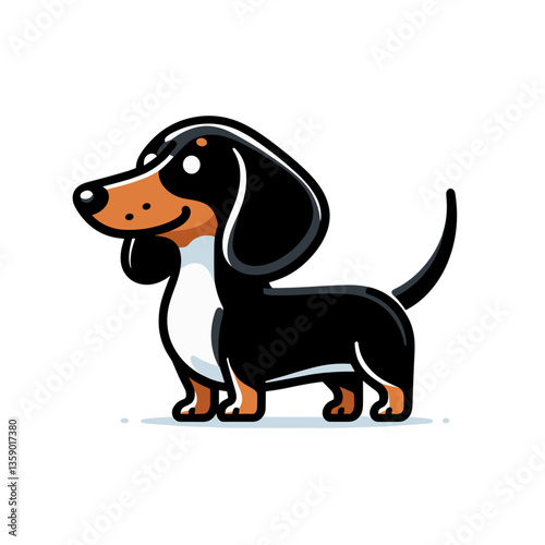 Cartoon dachshund dog with cute expression. Ideal for pet-related products, children's content about dog breeds, or veterinary clinic branding.