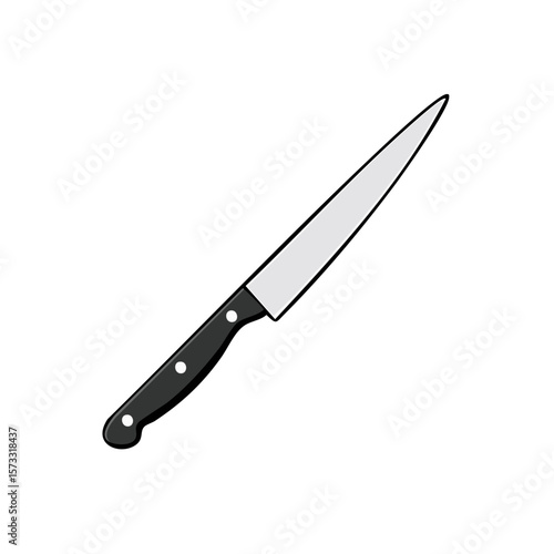 Cartoon Drawing Style Kitchen Knife with Black Handle Culinary Preparation Tool