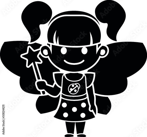 Cartoon Fairy Wings Wand Wing Sprite Pixie Fairies Black and White Vector Design Illustration
