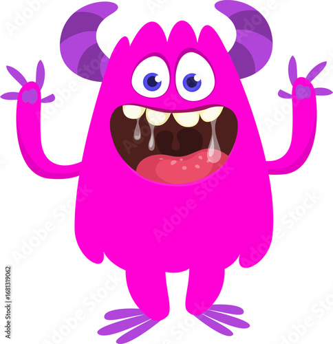 Cartoon funny monster character design with funny face expression. Halloween vector illustration