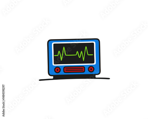 Cartoon heart rate monitor illustration with green heartbeat line