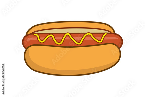 Cartoon hot dog with mustard isolated on white background