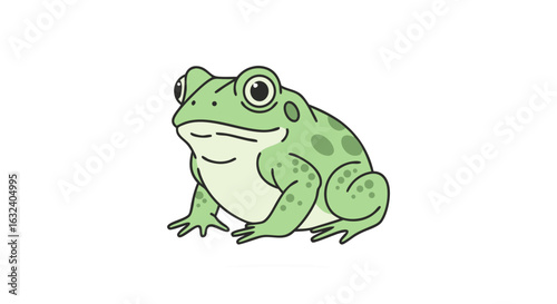 Cartoon illustration featuring a charming green frog with a light-hearted expression and whimsical design perfect for digital use