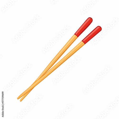 Cartoon illustration of a pair of wooden chopsticks with red tips, isolated.